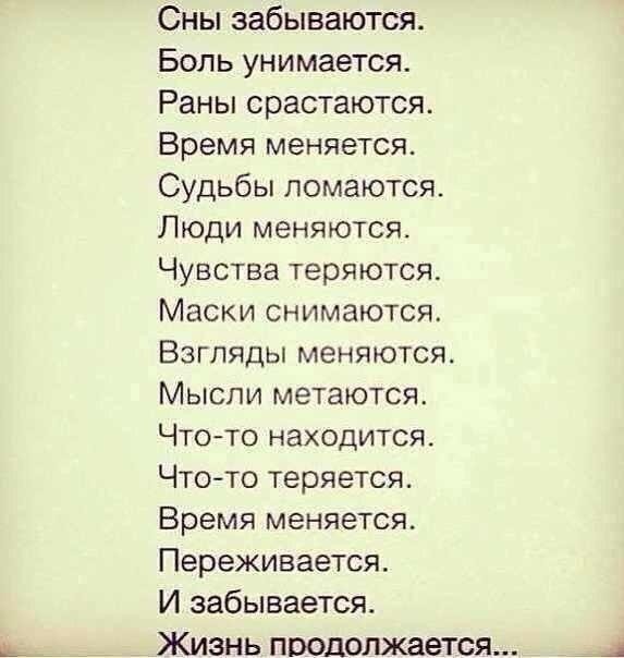 | Цитата Руся (  ) Ему не хорошо. Он это постоянно повторяет . Дочке вот сегодня снова писал, что без нас не живет. Смысл жизни потерялся. И я верю в это. Меня вот смущает...Это только слова...Если без людей не можешь, ты сделаешь все, чтобы быть рядом...Может и наивно.. Но, по факту он знает, что в его силах сохранить семью. Ему для этого много не нужно делать... Руся, может быть , спустя время, вы, если будет еще желание, в разговоре с ним скажите, что конкретно вы ждете от него. Какой вы видите семью, что для вас ценно в ней, как вы представляете работу обоюдную в ней, какие радости семейные ценны для вас, итд. Мужчины более конкретны. Возможно, он ваши разговоры о работе в семье над отношениями воспринимает как-"всю жизнь ходи виноватый, угождай".Вы можете сказать это , хотя бы для того, чтобы вы знали, что вы сделали все для восстановления семьи. Но, если честно, мне кажется, что он просто красиво отползает от вас. Пытается сохранить хорошие отношения, дергая за струнки жалостливые...Это вы сами смотрите, что больше на него похоже. Но, одно скажу. Он хороший манипулятор. Вспомните свою семейную жизнь. Замечали? Скоро вам полегче будет. Работа займет все мысли, или большую часть. Появятся собственные деньги. Появятся новые люди рядом. Все это расширяет кругозор. И начнется понимание, что мир не состоит только из вашего мужи и лю. Ваш мир намного шире будет. Тогда и решения принимать проще будет. Да Вы и сама это знаете)