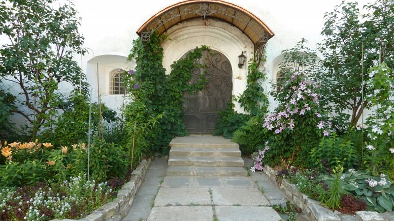 Там роскошные цветники, какие-то удивительные цветущие деревья и вкусный квас)