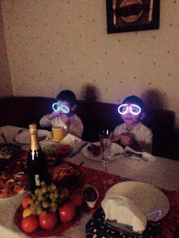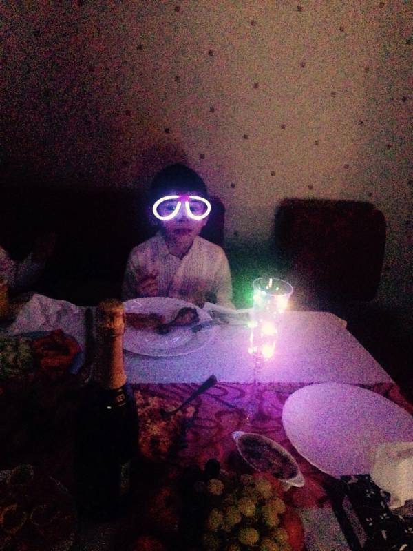 | Ну вот и все деваньки! Всех с наступившим новым годом! Отгуляли весело, дети довольные, прыгали играли, подаркам радовались как слоны! Купила всяких светяшек на стол неоновых, так здорово! Кидаю отчет новогоднего стола!