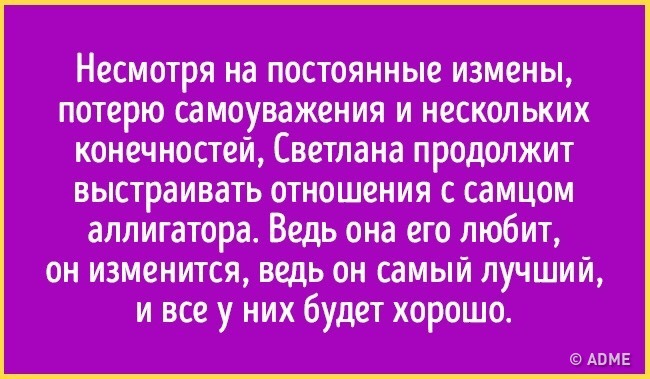 Цитата Незвезда (  ) он писал мне какая она красивая и чудесная, и как он ее любит, и как он никогда не любил меня. Видела силуэты бывших с букетом цветов в дверной глазок, читала письма с комплиментами... Но чтоб вот такое интерпретировать, как заходы к возвращению, вот это треш, конечно. Ящур мозга, или я нифига в этой жизни не понимаю, и неправильно жила И не с теми общалась