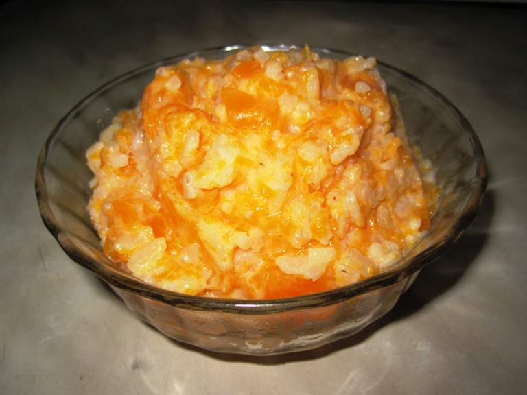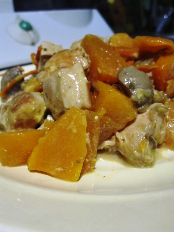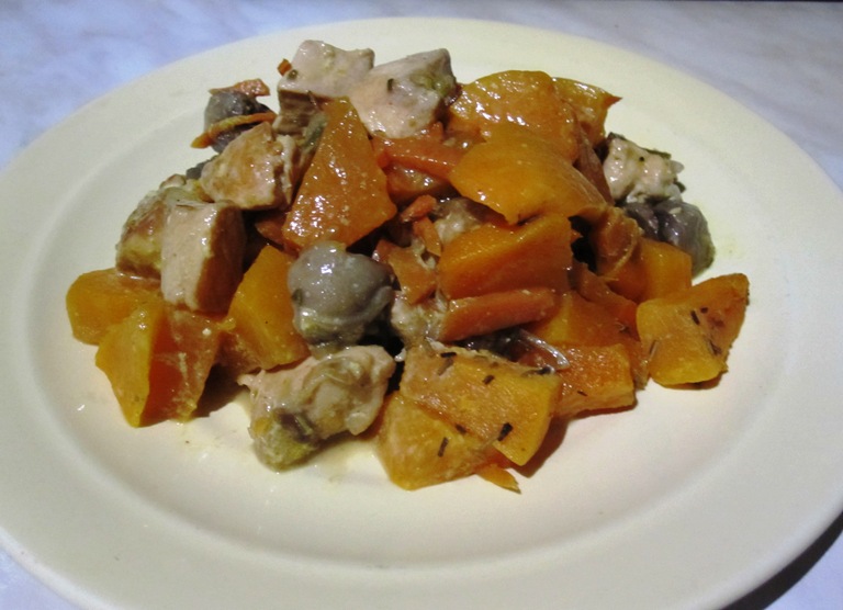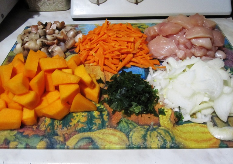 | Львица, обещалась отчитаться по тыкве :happy: Не прошло и пол года... Подходящего размера тыковку, чтобы сделать в ней жаркое, я не нашла. Решила сделать сие безобразие в глиняных горшочках. Купила просто тыкву кусочками, на рынке, у пожилой бабушки. Сочная, яркая, в меру сладкая - то шо дохтур прописал. Взяла 2 куросиськи, грамм 300 некрупных шампиньонов, 1 морковку и большую луковицу, свежую петрушку из приправ - лаврушку, смесь перцев, тимьян. Покромсала все ингридиенты, обжарила малость кусочки филе, отдельно - лук с грибами. Выложила слоями в горшочки, сверху - куски тыквы. Влила в горшочки по ложке сметаны и воды. Поставила в духовку на полчаса. Сочно, вкусно. Мне лично малость не хватило остроты, в следующий раз что то перемудрю. Из остатков гарбуза (много купила) сдела в мультиварке сырный пудинг: притушила до мягкости тыкву, добавила чашку свареного до полуготовности риса, влила поллитра молока, 2 пакетика ванильного сахара, ложку сливочного масла. И на режиме "молочная каша" - до готовности. Жрал даже кот  Добавлено (16 Февраля 2016, 19:28) --------------------------------------------- "рисовый пудинг