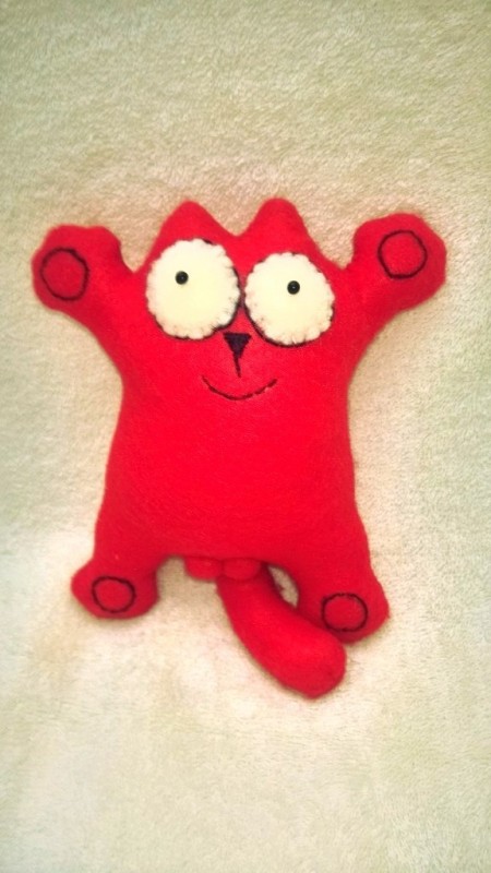 | сейчас наборы продаются разных тканей, но цена - пичалька. Из них можно игрушки, альбомы оформлять, разное, в общем. У меня в машине был кот -тильда. Отдали родственникам мужа, даже фотки не осталось, полосатый большой кот из ткани. А второго шить нет настроения. Тоже легко шьются, выкроек море. Кот Саймона прикольный, наклеек много разных, игрушек, рисунков. Пошел в народ после мульта и живет своей жизнью. Tabita, кот хороший для первого раза, уменьшать и увеличивать выкройки игрушек непросто, у меня вышел четвертый кот удачно, а три кота до него были то большеухие, то малолапые.