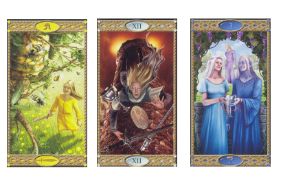 Впервые Эльфы показали не картинками, а легендой. В пажа мечей( мальчик Гарибреч) по легенде вселилась нечисть и он начал убивать людей. А 3 чаш с Повешенным показала и насилие, на тройке чаш еще связанные руки. Я бы никогда не догадалась так прочитать. Но карты опять правы.