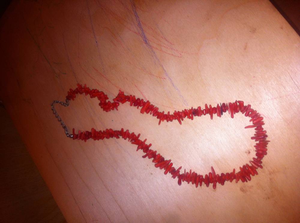 | Ещё бусы из красного коралла. Она попросила Серёжу купить их мне на День рождения. Он купил, они были у неё. А до моего дня рождения она не дожила. То есть, получила я их после её смерти.