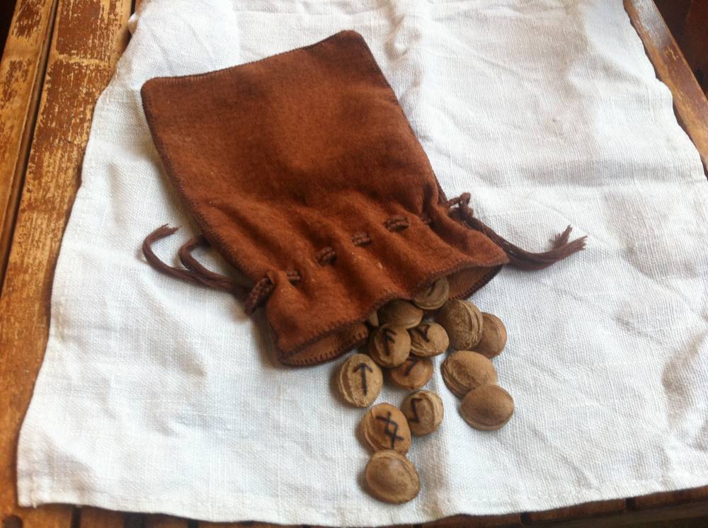 Мне очень понравилось от Lizz- из абрикосовых косточек. 1. покупаем 25 абрикосов. 2. высвобождаем косточки -моем , сушим (при желании можно дополнительно обработать-например отшлифовать) 3. наносим руны на поверхность вариантов масса: маркером, вырезаем (вырезанные ложбинки можно заполнить: краской , кровью, соком ягод), выжигаем и тд.. 4.покрываем лаком для большей сохранности.
