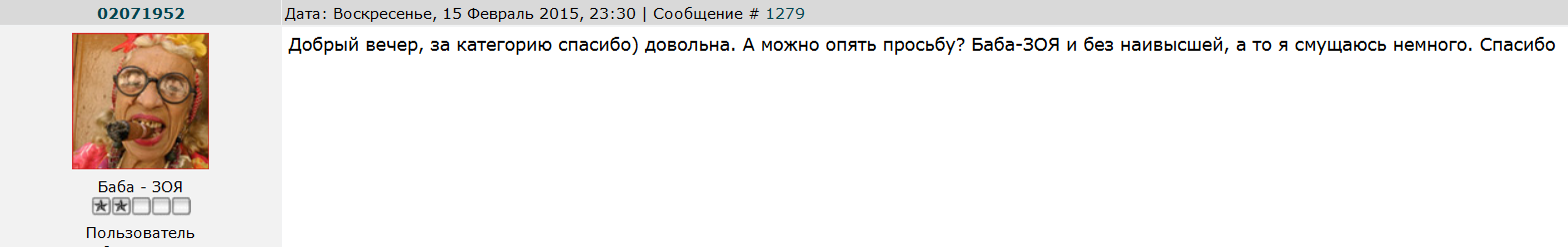 А то я всё бабуля с сигарой. Баба Зоя, нам вас очень не хватает, хотя характер у вас жестковат, но справедливый.