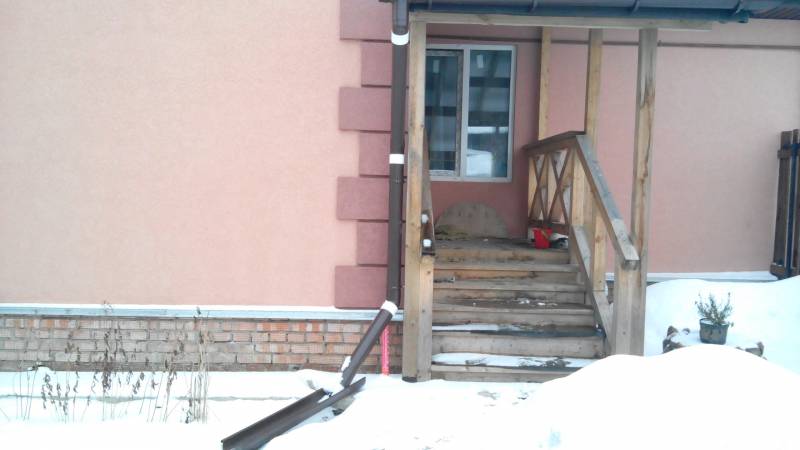 | Цитата Myyyshka (  ) А течет прям по центру вот этой сплошной стены. Это прошлогоднее фото. Этого года фоты нет. По стене я уже все написал. Только вскрытие. Цитата Myyyshka (  ) А какой там может быть переход, крыша утеплена слекловатой этой, или как она там называется, зеленая такая. А стена пенопластом и штукатурка... конечно там есть разрывы, еще какие Утеплитель кровли должен быть продолжением утеплителя стены. Цитата Myyyshka (  ) И пленку я помню он отрывал, она везде валялась, а я все орала на него, что он козел. Myyyshka, тут вы как в воду глядели. Крыльцо на фундаменте стоит? И еще вопрос: почему соединители на трубах водостока белые?