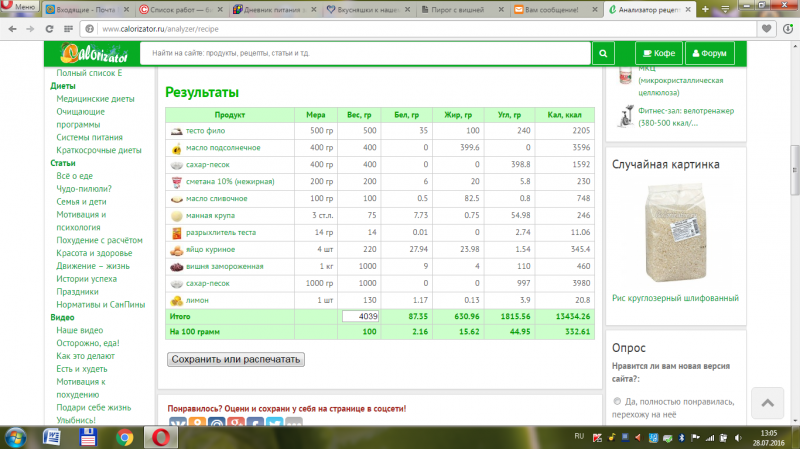 Виола, а смысл считать калории на всю компанию, которая будет есть эти 4 кг пирога?) Да и там явные ошибки в рецепте. 400г растительного масла, например, сиропа бочка)