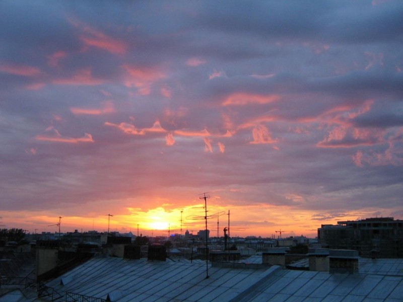 Цитата 151971 (  ) "Мой" Питер - это ещё и моя мансарда, где я купила свое первое и единственное жилье. Когда перебирала варианты, случайно забрела и в эту квартиру. Вышла на балкон - и онемела. Это все было "моим" - вид из моей мансарды на питерские крыши. Крик чаек (гнездятся прямо тут, рядом, на выщербленных кирпичных воздуховодах, как на скалах). Впереди - силуэт Петропавловки в мареве или серой пасмурной дымке. Над головою - только небо. И закаты, и белые ночи. Поэтому румянцевские коты, сидящие на питерских крышах - это тоже мое, близкое.
