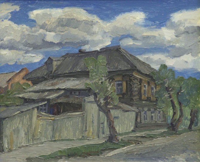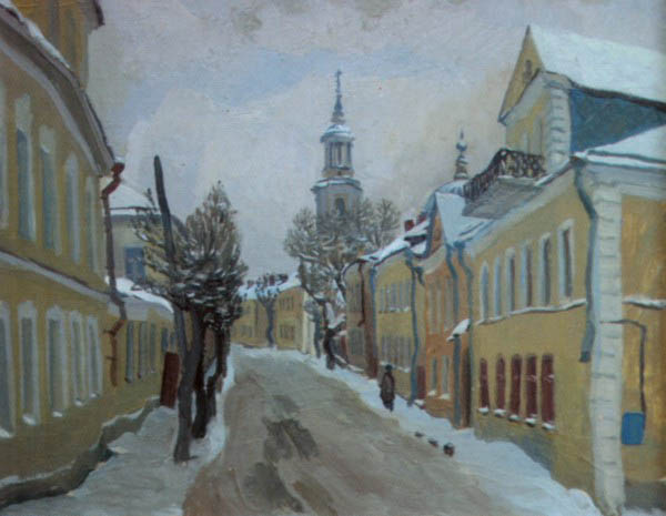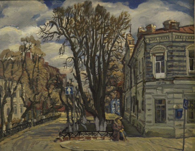 Манера письма близка к импрессионизму. Широкие и длинные мазки. Он известен в нашем городе и за пределами. Хотя мне всегда казался простоватым. В сюжетах преобладает городской пейзаж, старый город. Многие старые архитектурные памятники, так сказать, увековечил в своих картинах.