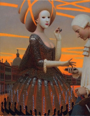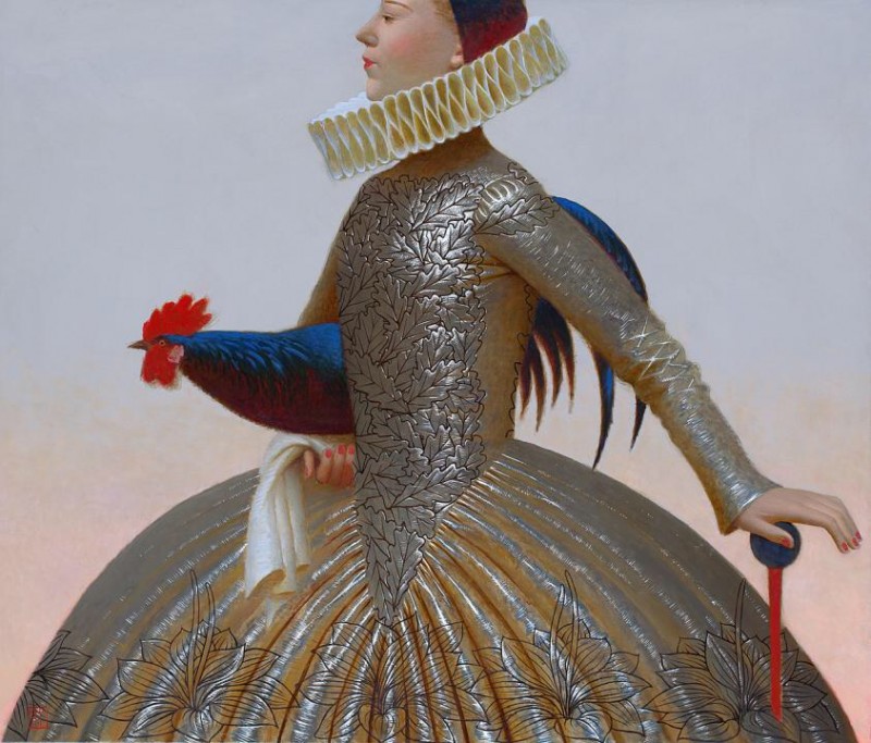 | На меня произвели впечатление картины современного русского художника Андрея Ремнёва. У него есть цикл картин необыкновенно ярких, нарочитых, каких-то чрезмерно декоративных - вживую они просто бросаются в глаза и их хочется рассматривать и угадывать - что зашифровал художник в своей картине? Я ничего не разгадала, но удовольствие на выставке получила.