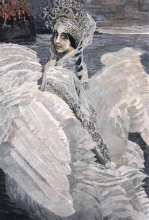 | Михаил любил жену трепетно. И восхищался её талантом. Одна из самых лучших партий у Надежды была Царевна-лебедь. И влюблённый муж нарисовал жену в этой роли.