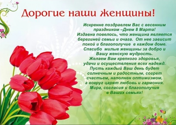 | Всех с весной! Пусть неприятности растают И утекут с ручьями прочь Цветы, как счастье расцветают Весна всегда спешит помочь)