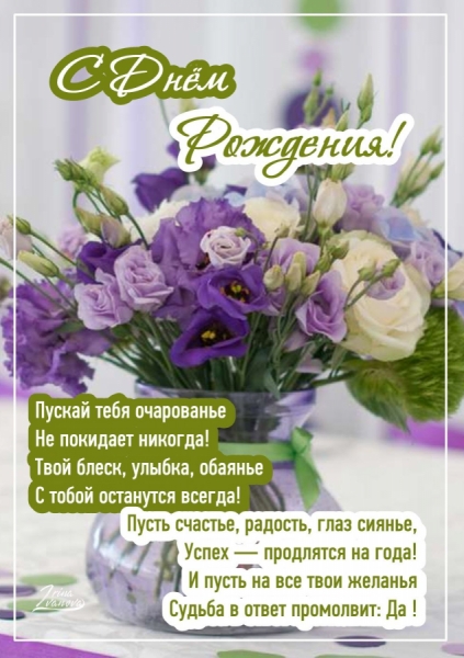 Стучит День рожденья в окошко – тук-тук! Пусть вторит ему сердца радостный стук! Пусть падает в руки звездою мечта! Пускай окружает всегда доброта! Пускай бьет энергия мощным ключом, Здоровье сразит все болезни мечом, Поднимет мечта пусть до самых небес И ждут в День рожденья салюты чудес!