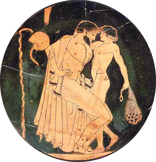 Поэтому с точки зрения греческой сексуальной этики гражданин не должен был выступать в пассивной роли после того, как он достиг совершеннолетия. При этом у нас есть прямые свидетельства о гомосексуальных связях двух мужчин, младший из которых уже вышел из приличного для такой связи возраста, но все эти связи очень специфическим образом оформлялись — и мы видим, что для греческой сексуальной этики это крайне напряженный момент. Более того, поскольку пассивная роль принципиально подчиненная, предполагалось, что пассивный партнер не должен испытывать удовольствия. Именно поэтому на вазах младшие партнеры никогда не изображаются возбужденными. Больше того, в том, что касается сексуальной стороны педерастических отношений, греческие писатели о ней скорее скромно умалчивают или по ходу замечают, что сексуальный аспект в таких отношениях вообще неважен. Меня могут спросить: а как же грубейшие шутки Аристофана по этому поводу? Но тут комический эффект, как всегда, заключается в том, что с практики, где благопристойность и скромность играют решающую роль, Аристофан нарочито грубо срывает все покровы.