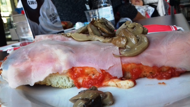 Но, в Милане меня угостили совершенно потрясающей пиццей, на толстом дрожжевом корже. Он был хрустящий и просто волшебный! Это был настоящий вкусовой экстаз! Я съела этот огромный кусок до последней крошки.