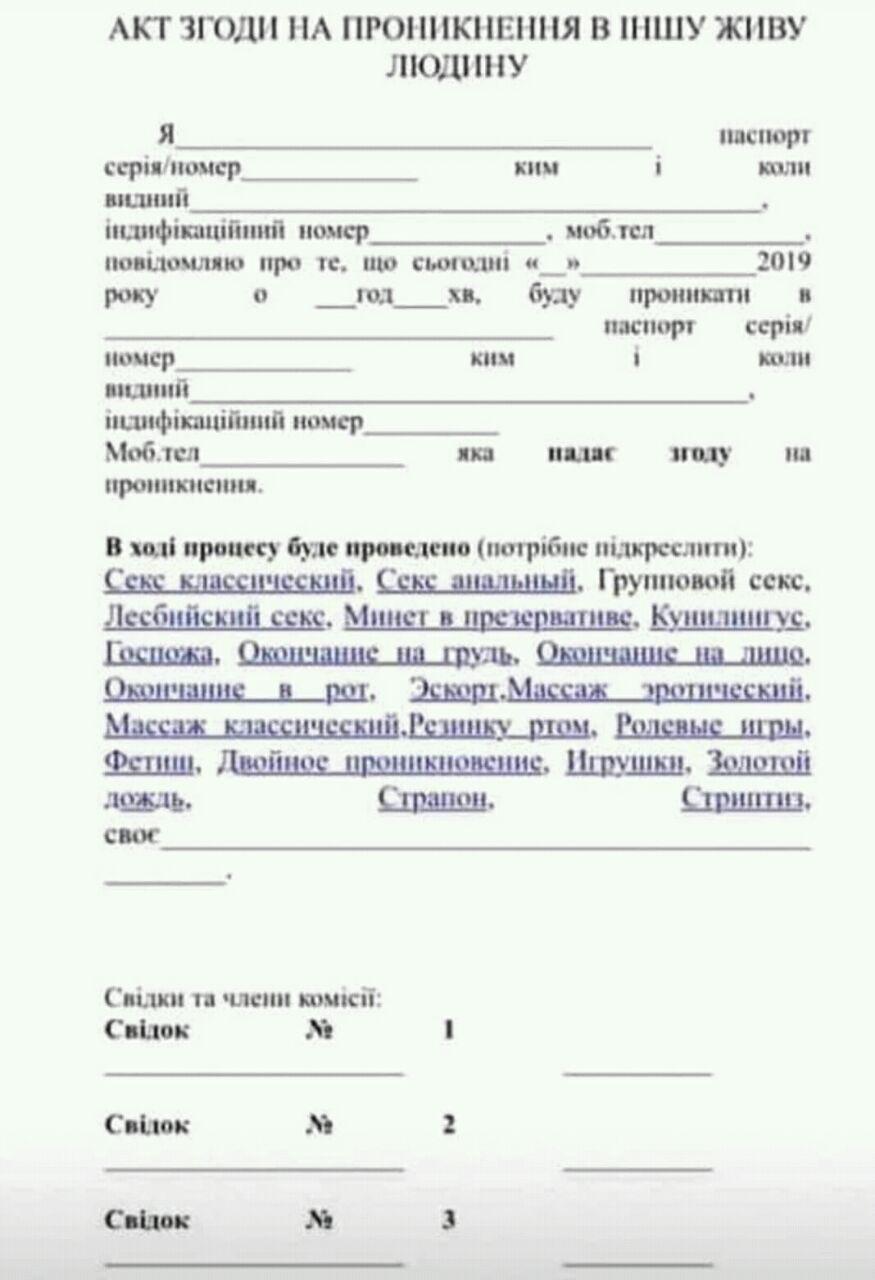 | Ангелина, С 11 янв вступил в силу закон о согласии на секс. Женщина может отказаться от секса на любом этапе. Теперь изнасилованием считается даже если жена сказала нет. А письменные разрешения не видела, не знаю. Думаю, это шутка.