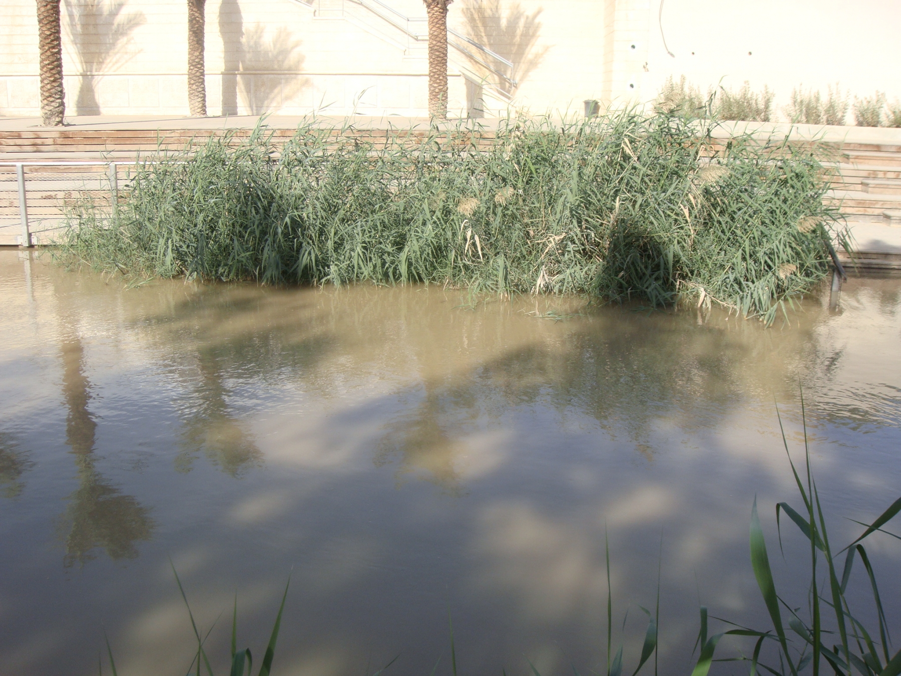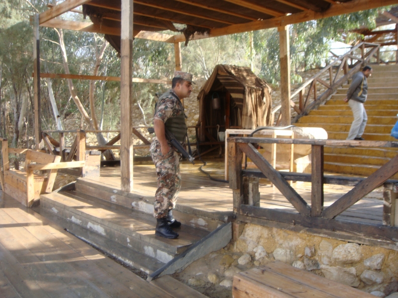 Вот такая узкая и мутная река Иордан. И на другой стороне Израиль. Если захочешь сигануть, то огонь на поражение. Все серьезно, не забалуешь.