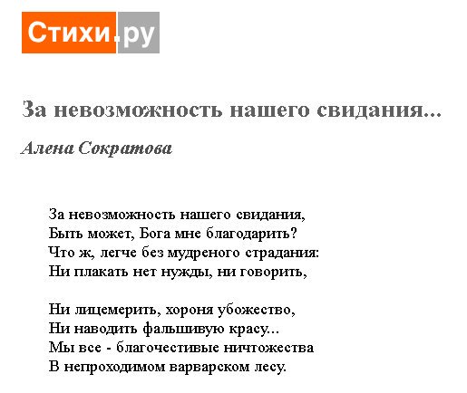 А мну вот потрясли строкы Алены Сократовой