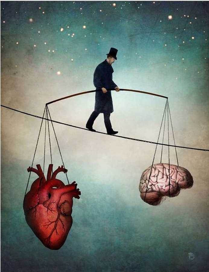 | Цитата Cleo (  ) Космея, Какая ужасная картинка... И, одновременно, отрезвляющая. Самый простой и здоровый вариант - скинуть седока вместе с его чёрными тайнами. С канатоходцем увидела сердце вниз головой, которое умоляюще тянет ручки-сосуды к хозяину и беспомощно дрыгает ножками в воздухе. Как правило, баланс не удаётся сохранить и наступает кирдык.