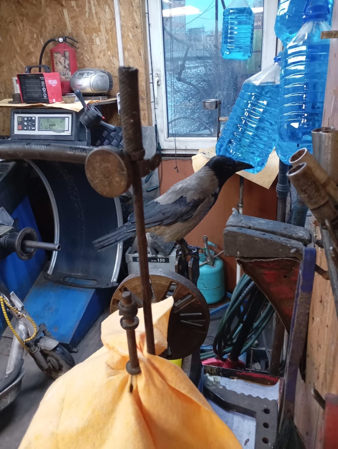 Он же Каркушу- Вороню домой после работы берет. А утром с ней - на работу. Она вообще за ним хвостом ходит. Куда он - туда и она. Там номер телефон на двери : " если нас нет, - звоните по номеру... Будем через 10 минут"