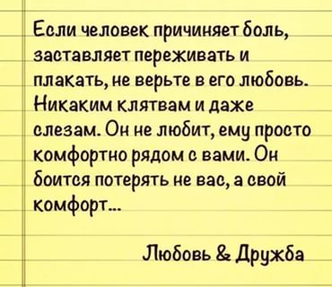 | Мультик, конкретно эту фразу не то что всерьез а считаю это единственной истиной. Зона комфорта гораздо важнее всяких любовей и многие путают эти понятия принимая одно за другое. А когда добавляется хватательный рефлекс на фоне появления любовницы (ка) то и вовсе кажется что все капец это любовь всей жизни подохну без этого. Это я Флай так вижу. На деле, как можно любить того кто годами срал в душу и не заморачивался тем что ты чувствуешь при этом? Он это тоже от любви? Да просто ему удобно с вами а вам комфортно с ним и никто ничего не хочет менять. Как только одному становится некомфортно все рушится.